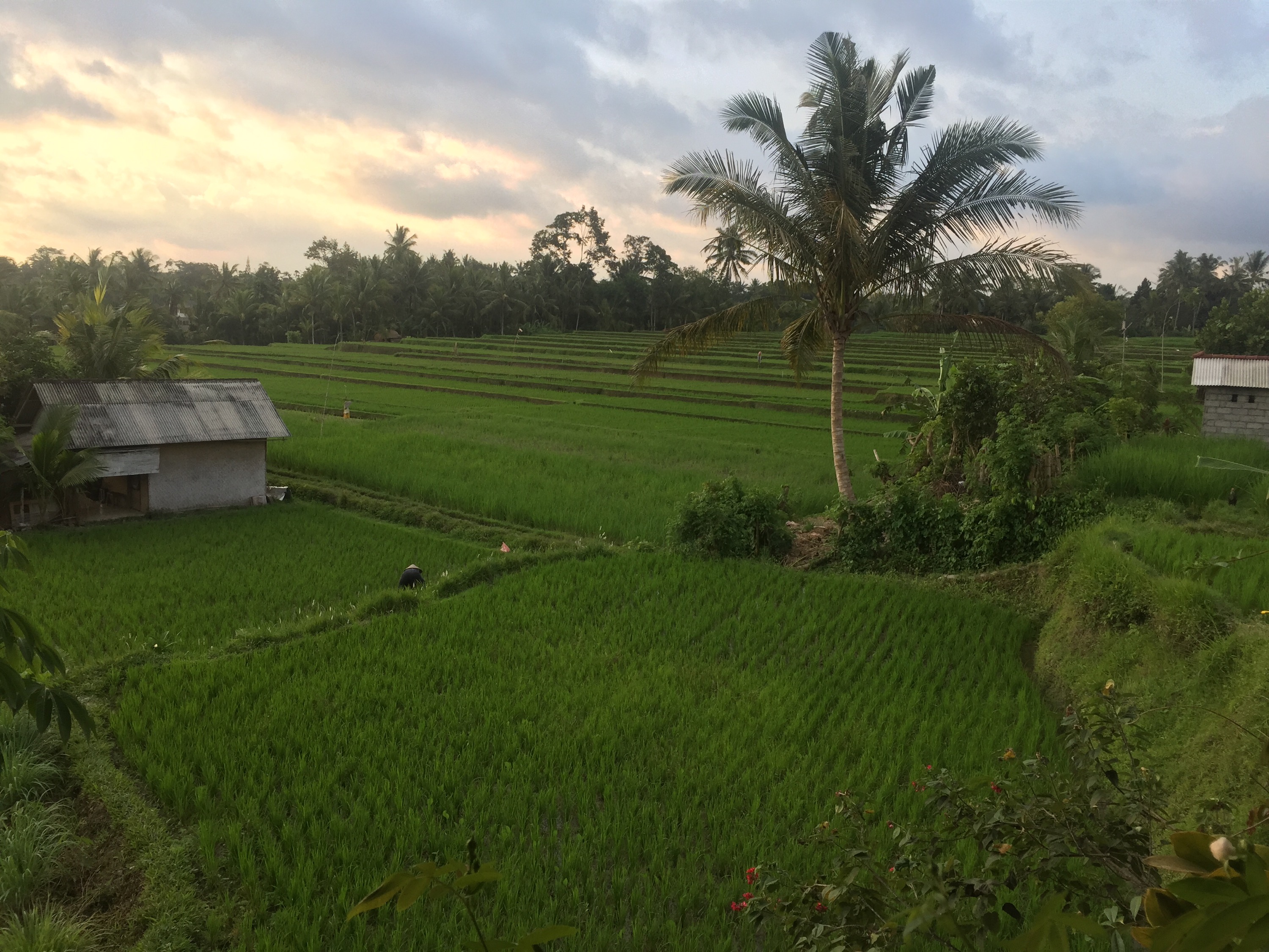 Ubud hat Unmengen an Lokalen in denen man gut essen gehen kann. Man findet für alle Geschmäcker etwas, von Indonesisch über Italienisch bis zur Fancy-Häppchen-Küche ist alles da. Ganz bodenständig sind wir gestern wir in ein klassisches Warung Namens Sari Organik gegangen. Warungs sind quasi indonesische Imbisse. Das Essen war gut, wurde aber vom Ambiente deutlich übertroffen, denn das Warung liegt direkt inmitten von Reisfeldern. Dazu mussten wir nur einen kleinen, halbstündigen Spaziergang machen. Und der Verdauungsspaziergang zurück tat auch gut.