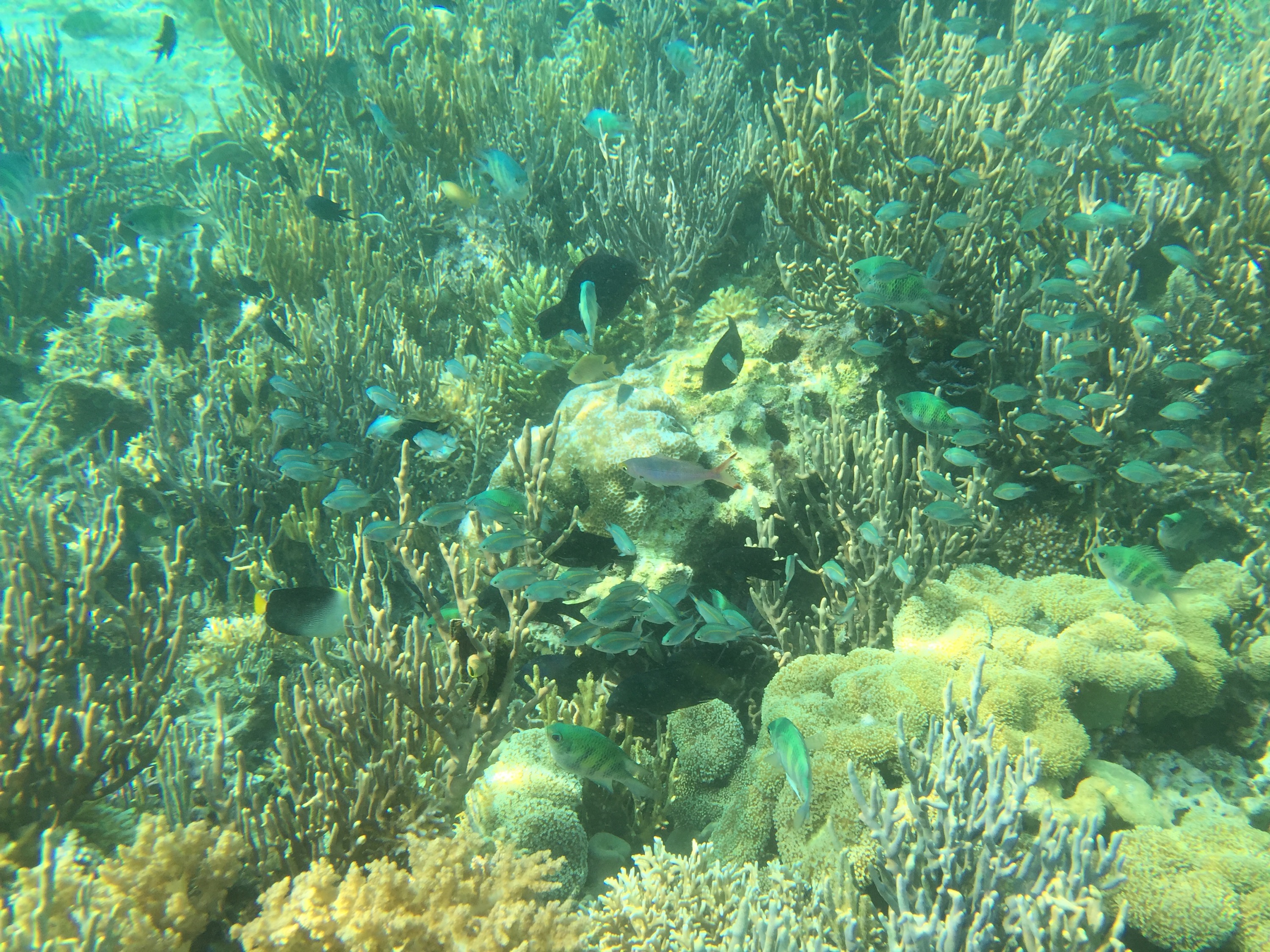 BTW: Die Korallenriffe kann man ziemlich gut aus der Luft sehen. Die Insel auf dem Luftbild ist eigentlich nicht bewohnt, bis auf kleines Resort. Dort haben wir die letzten Tage verbracht. Und zwar ganz oben rechts am Zipfel.