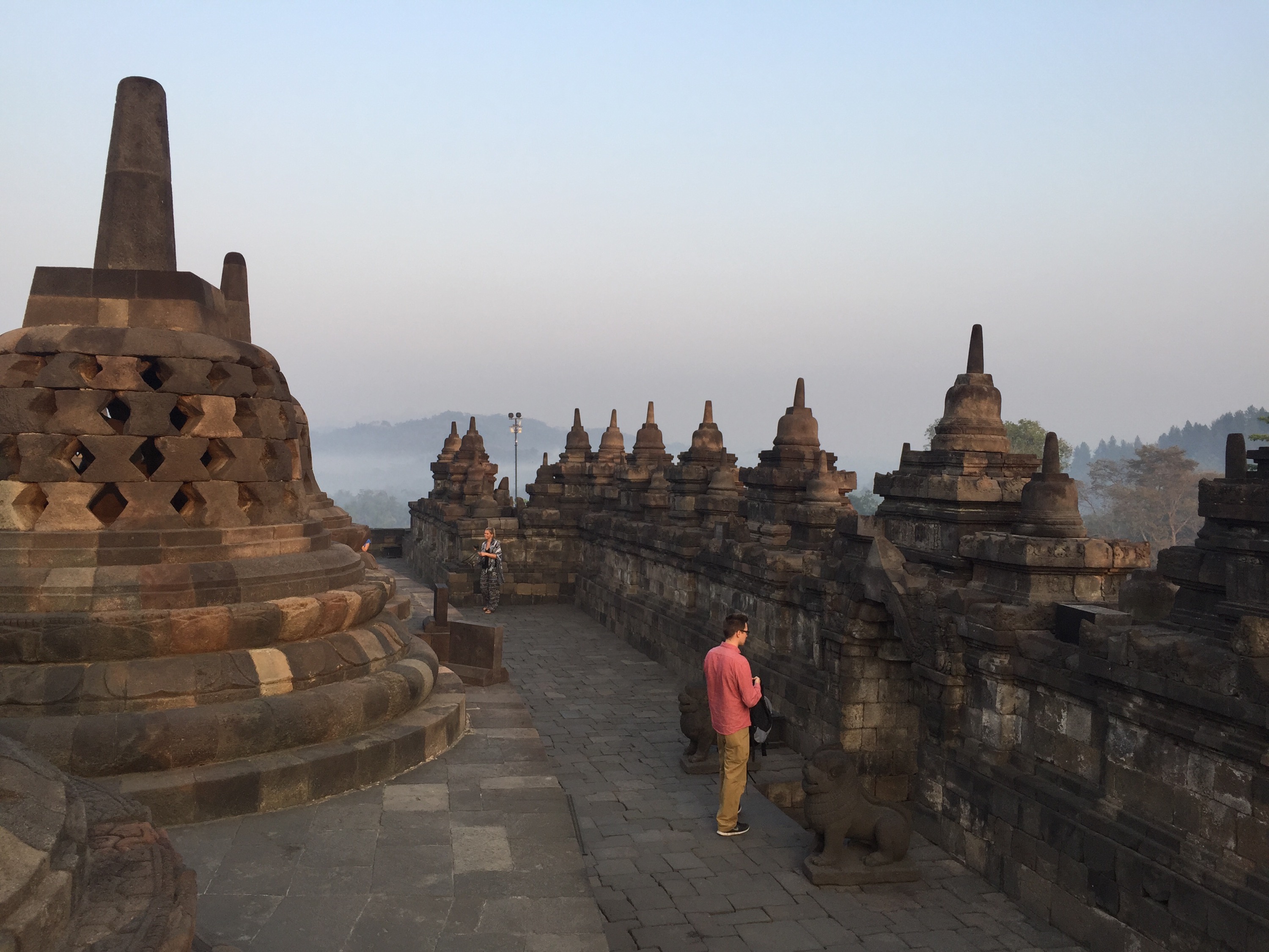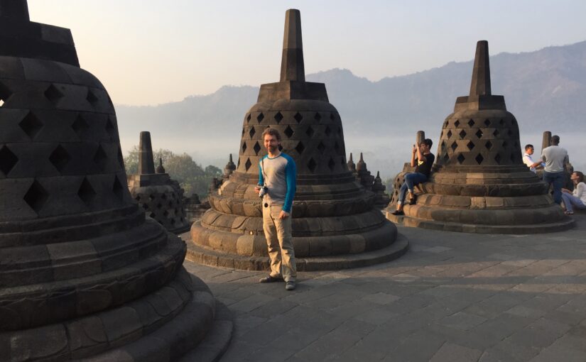 Das Ganze ist ein buddhistischer Tempel, der etwa zur Zeit Karl des Großen erbaut wurde. Er ist so gut wie vollständig erhalten und hat auch das große Erdbeben 2006 überstanden (https://en.m.wikipedia.org/wiki/2006_Yogyakarta_earthquake). Wirklich schön, finde ich. Die Landschaft und der Tempel ergeben einen tollen Gesamteindruck. “Ein bisschen wie bei Indianda Jones”, sagt Jörg.