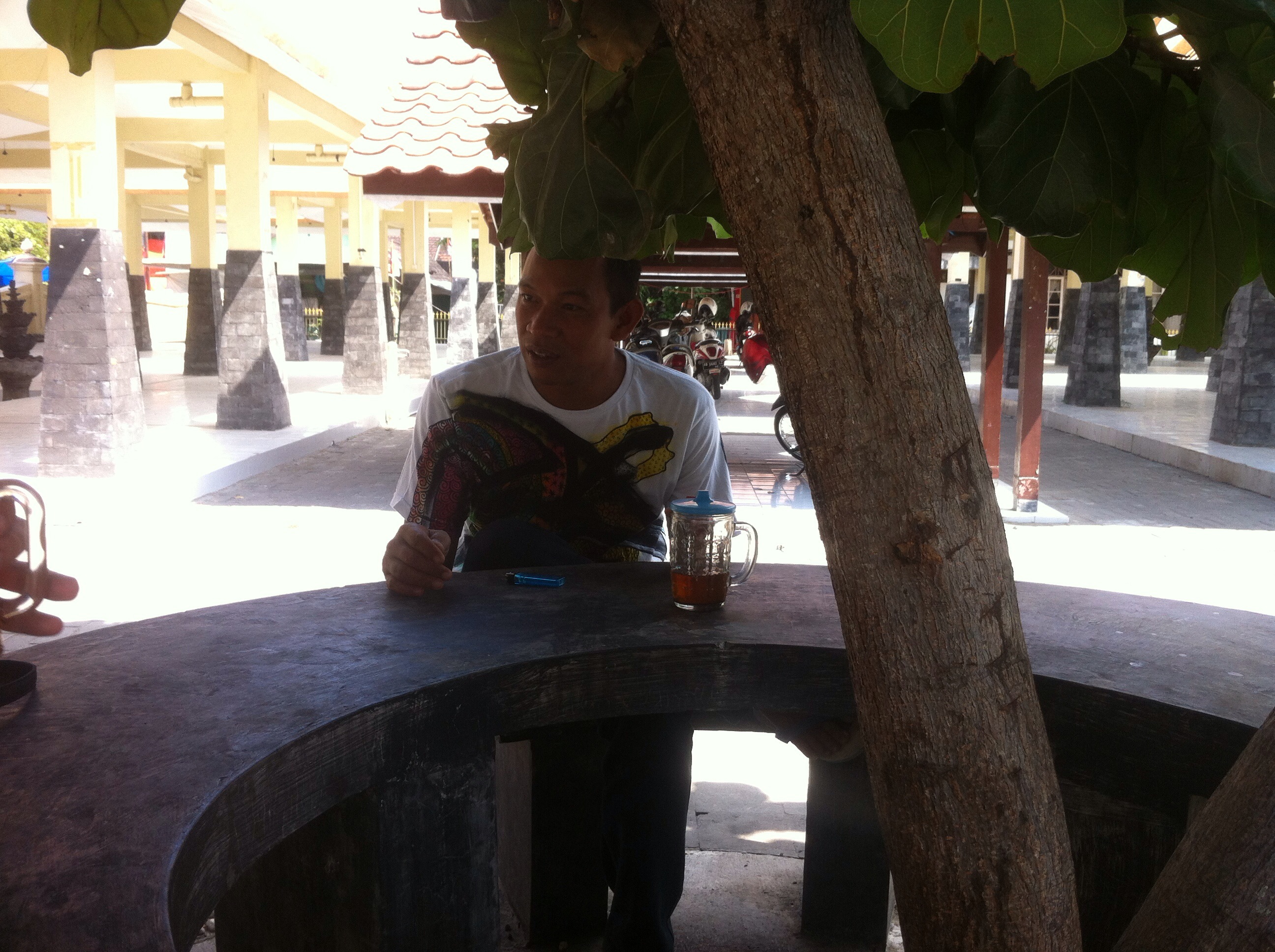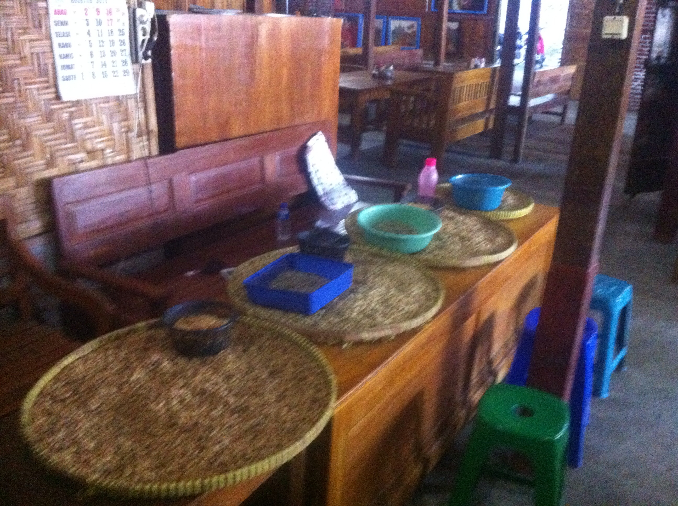 Der Einheimische auf dem Markt heißt Agus. Er ist ein Kaffeebauer der Kunst studiert hat und er hat Verwandte in den Niederlanden. Wir quatschen viel mit ihm über verschiedene Kulturen, Politik, Preise in Europa und Indonesien von Reis und Kaffee, und und und…